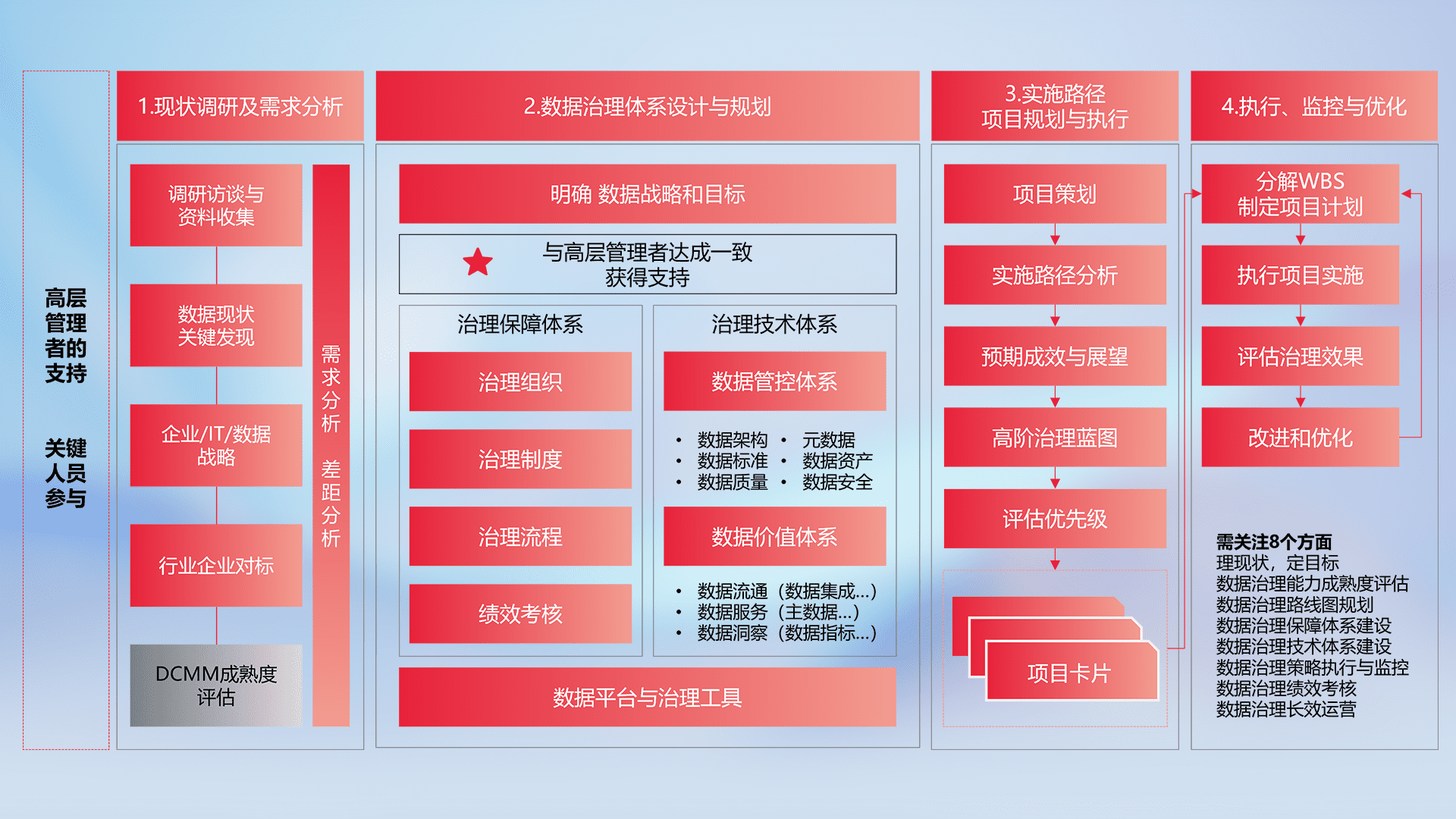 制定并执行统一的数据标准,,规范数据定义和格式,,,消除冗余和不一致性,,,,实现跨部门和跨系统的数据一致性,,为企业提供标准化的数据基础。。。。