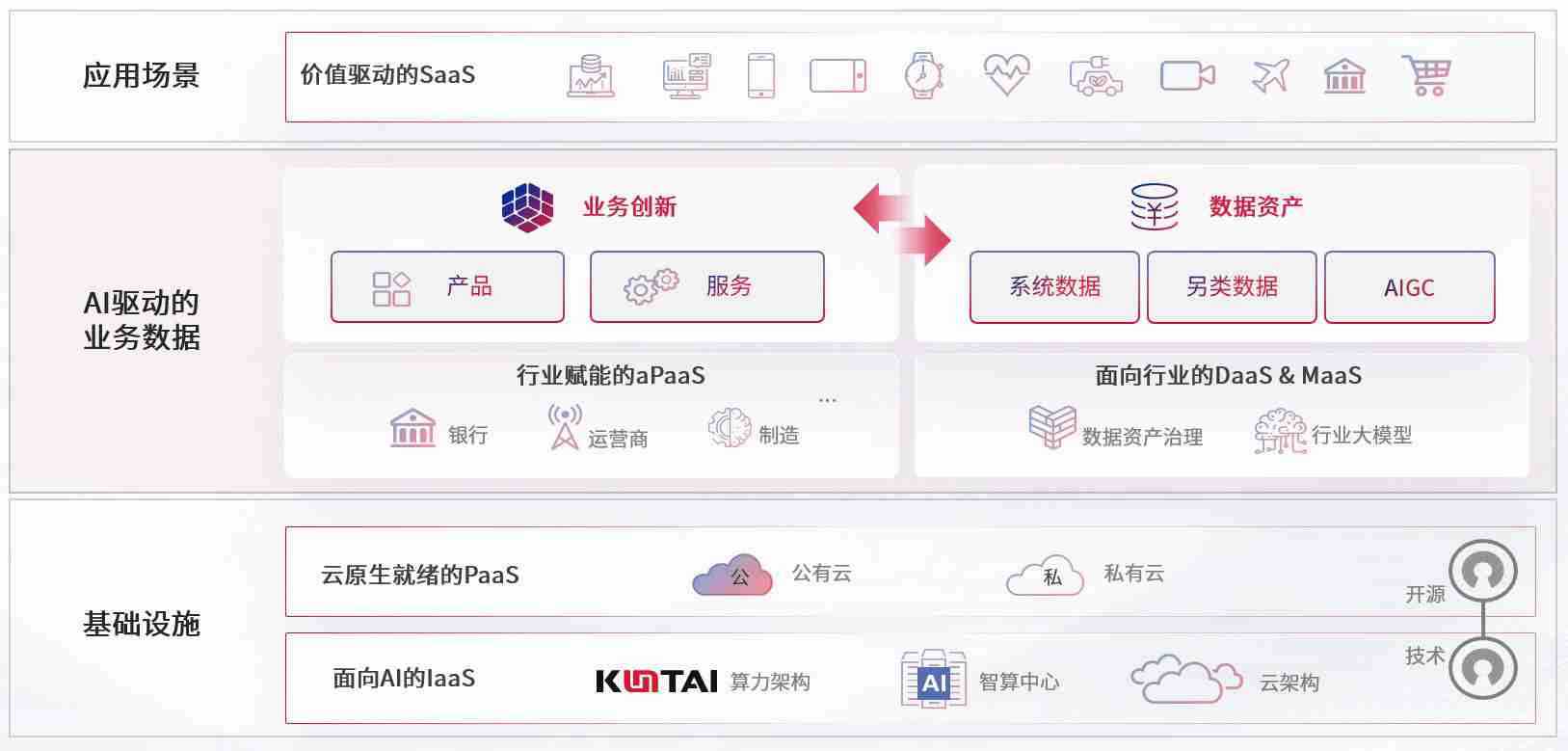 数字时代,,围绕企业数字化转型的关键要素,,,,Z6尊龙时凯数码开创性的提出数云融合战略和技术体系框架,,着力在云原生、、、、数字原生、、、AI原生和信创产业上架构产品和服务能力,,为处在不同数字化转型阶段的快消零售、、、汽车、、、、金融、、、、医疗、、、、政企、、、、教育、、、、运营商等行业客户提供泛在的敏捷IT能力和融合的数据驱动能力,,构建跨界融合创新的数字业务场景和新业务模式,,,助力企业级客户建立面向未来的核心能力和竞争优势,,全面推动社会的数字化、、、、智能化转型升级。。