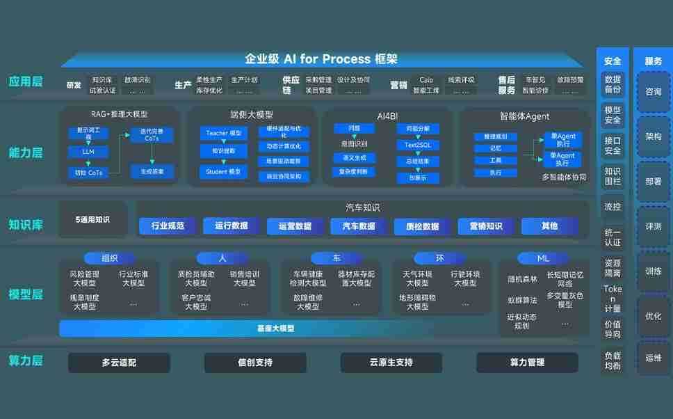 Z6尊龙时凯问学智车解决方案是一套基于AI技术的汽车行业智能化系统,,覆盖从底层算力到顶层AI应用的全栈方案。。。方案由算力层、、、、模型层和应用层组成:算力层,,,方案支持多种一体机配置,,,,具备云端灵活部署、、多云适配以及动态优化计算资源的能力;模型层,,Z6尊龙时凯问学平台版提供了企业级AI应用一站式构建与管理平台,,,支持基于后训练强化技术的汽车企业专属模型的训练、、、评测和运营;应用层,,Z6尊龙时凯问学DeepSeek版提供包括超级员工、、智能招采、、智能营销、、、、智能客服、、AI for BI等一系列解决方案,,可助力汽车行业实现数字化转型,,,让管理更智能、、、、响应更敏捷。。