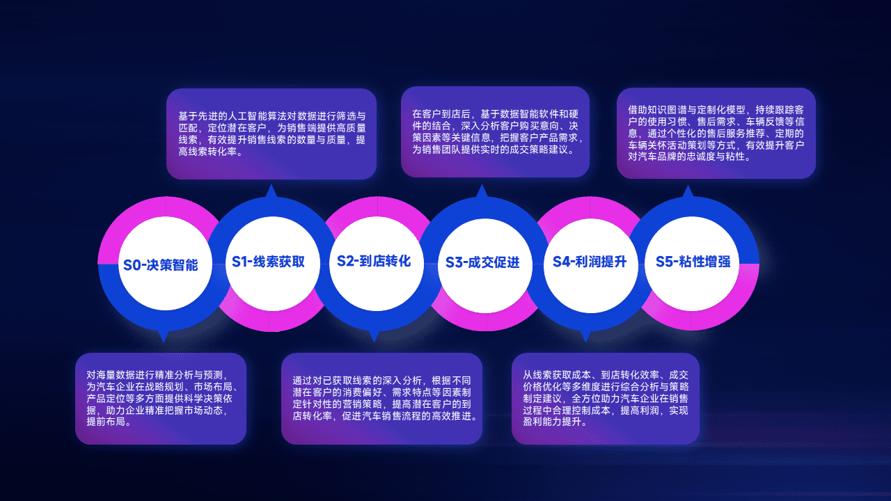 通过拓宽潜在客户来源、、、、优化线索分配并提高到店转化率,,以增强销售效率。。。同时,,,,利用线索数据不断优化分析模型,,有效提升转化率,,,扩大营销影响力。。。。